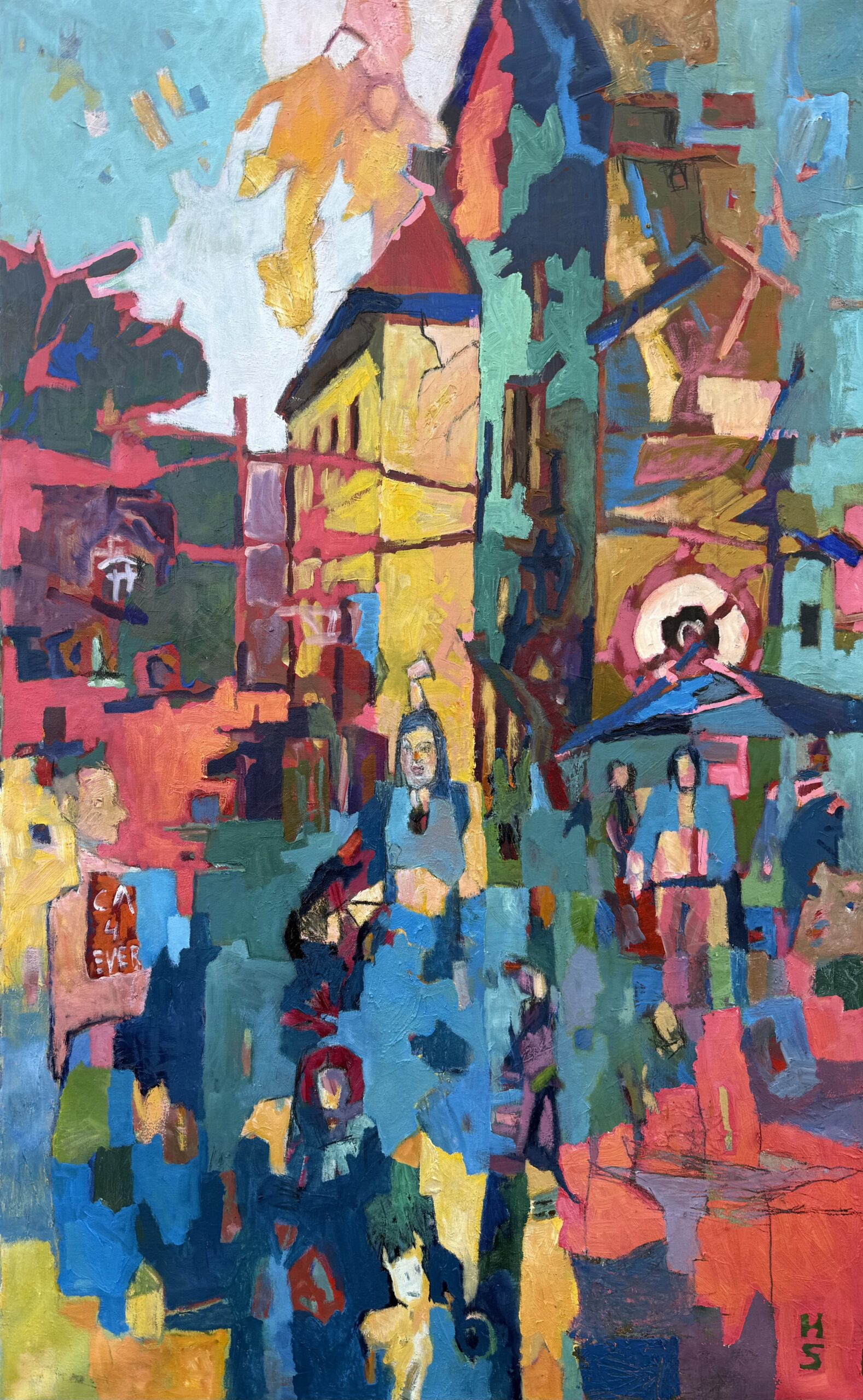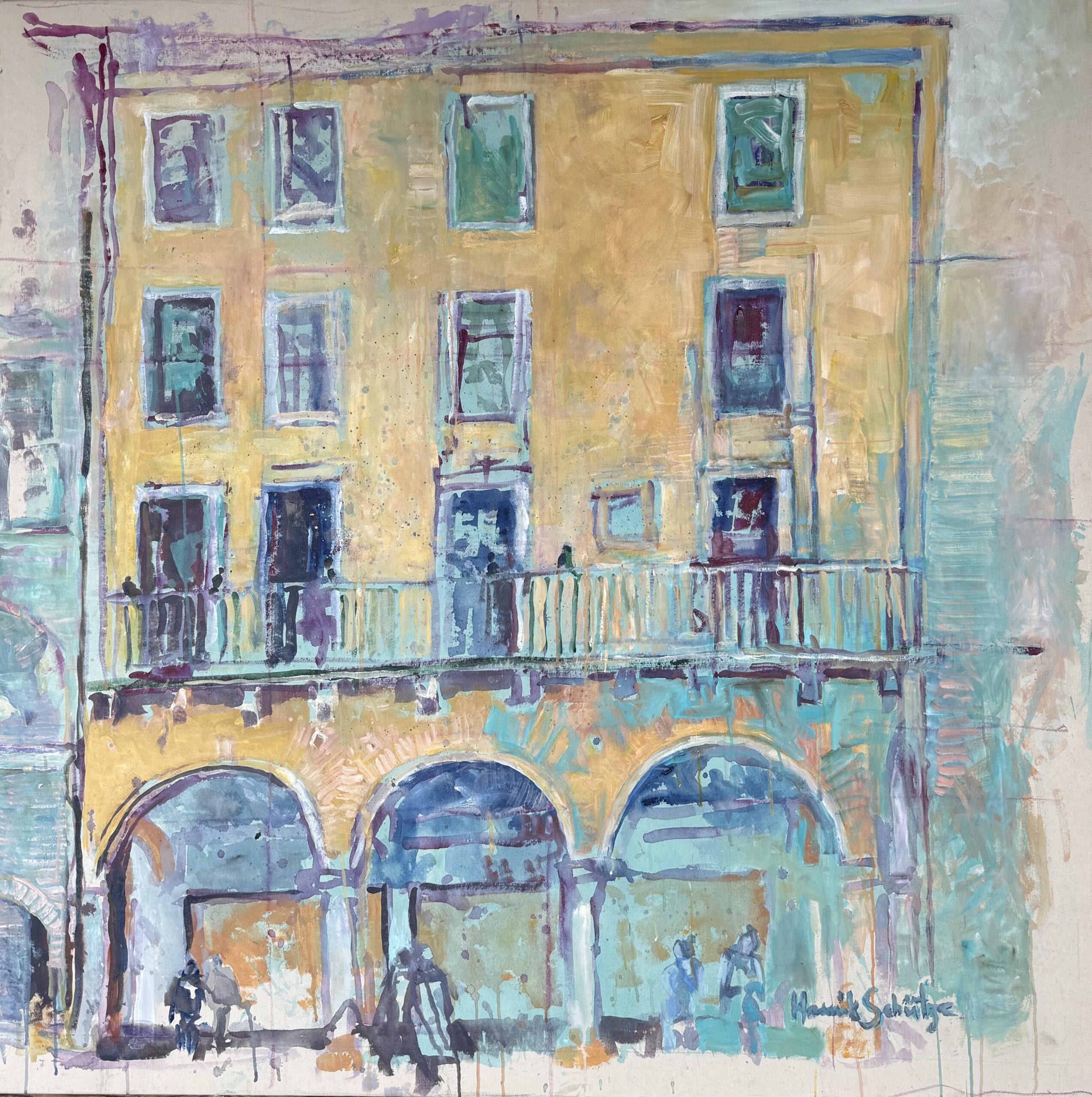 Repainting Piazza delle . 150×150 cm. 2025. 28.000 kr.