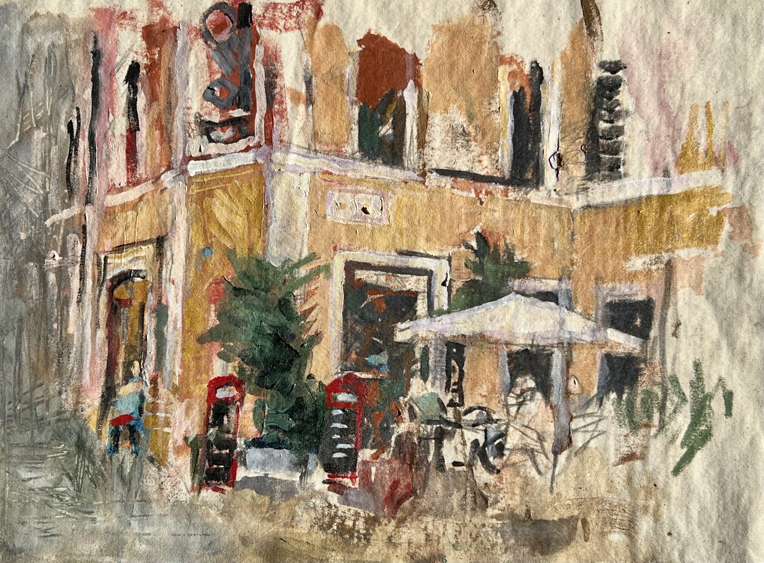 Paintet with spoon and espresso. Genova. 36×49 cm. 2025. 6000 kr.